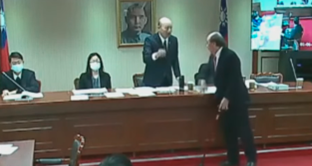 柯建銘對韓國瑜拍桌、拍倒韓的麥克風。