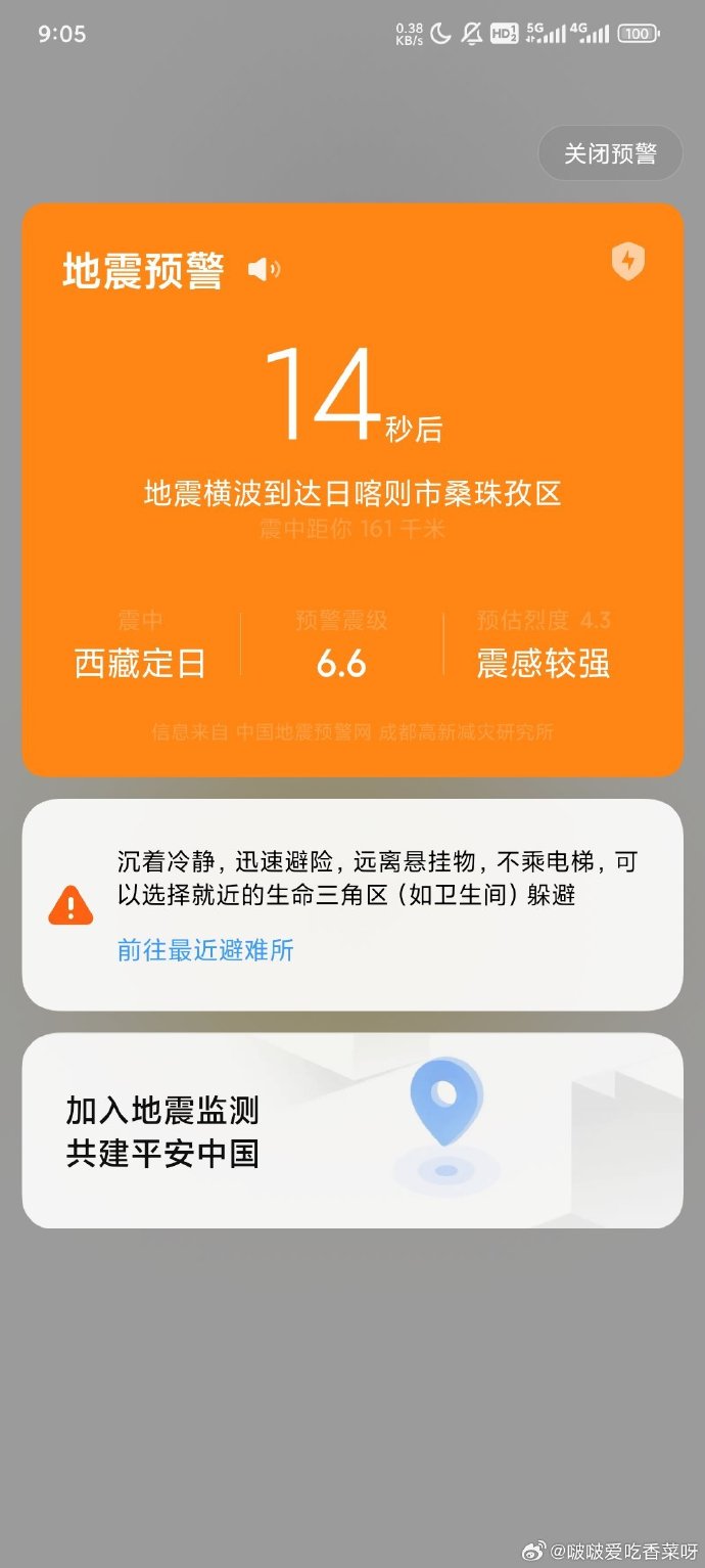 中國地震臺網正式測定:今日早上9時05分在西藏日喀則市定日縣(北緯28.50度,東經87.45度)發生6.8級地震,震源深度10公里,屬淺層地震。西藏自治區已啟動二級響應。據新華社消息,與定日縣聯系核實,縣城及周邊震感十分明顯,震中附近有不少房屋倒塌。從西藏自治區地震局獲悉,已有人員遇難,涉及定日縣長所鄉、曲洛鄉、措果鄉等三個鄉。