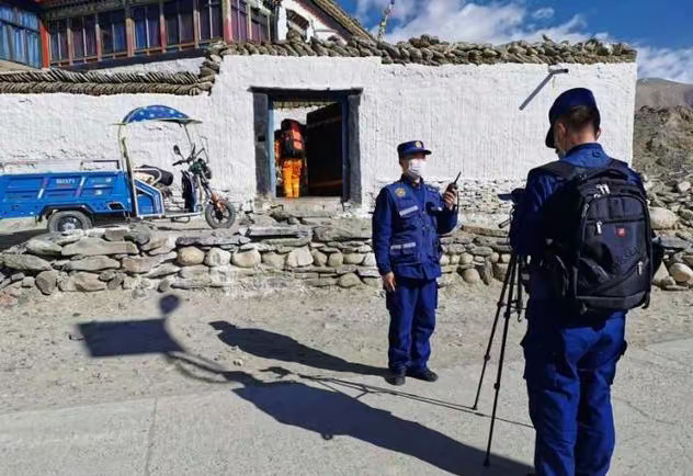 受災現場有不少房屋倒塌。消防人員在倒塌房屋上搜尋被困人員,他們徒手挖掘廢墟,呼喊被困者。西藏消防救援隊伍、森林消防隊伍共投入794人、150輛車趕赴現場進行救援。