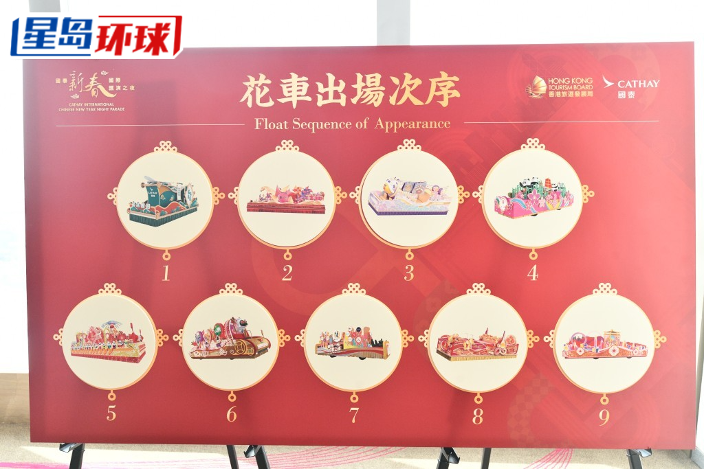 旅游發展局主席彭耀佳表示,今次9輛花車會擔任“香港旅游大使”角色,在設計上融入香港地道元素,包括大熊貓及奶茶等。旅發局會在網站為旅客提供新春旅游信息,希望吸引旅客在港“留耐一點、玩多一點”。他又指,蛇給人靈巧、充滿智慧的感覺,寓意香港在蛇年積極靈活把握每一個機遇。