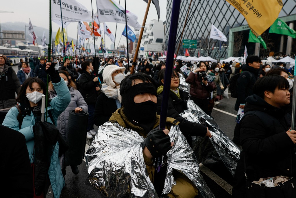 ▲大批民眾冒風雪集會抗議尹錫悅拒捕。路透社