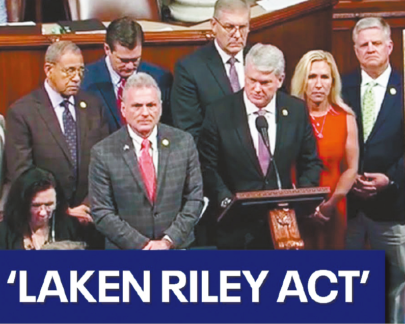 這次法案以喬治亞州大學女生萊利(Laken Riley)命名,她2024年2月在校園慢跑時,被來自委內瑞拉的無證移民伊瓦拉(Jose Ibarra)殺害,伊瓦拉被裁定惡意謀殺、嚴重毆打等10項罪名全部成立,需要終身監禁。
