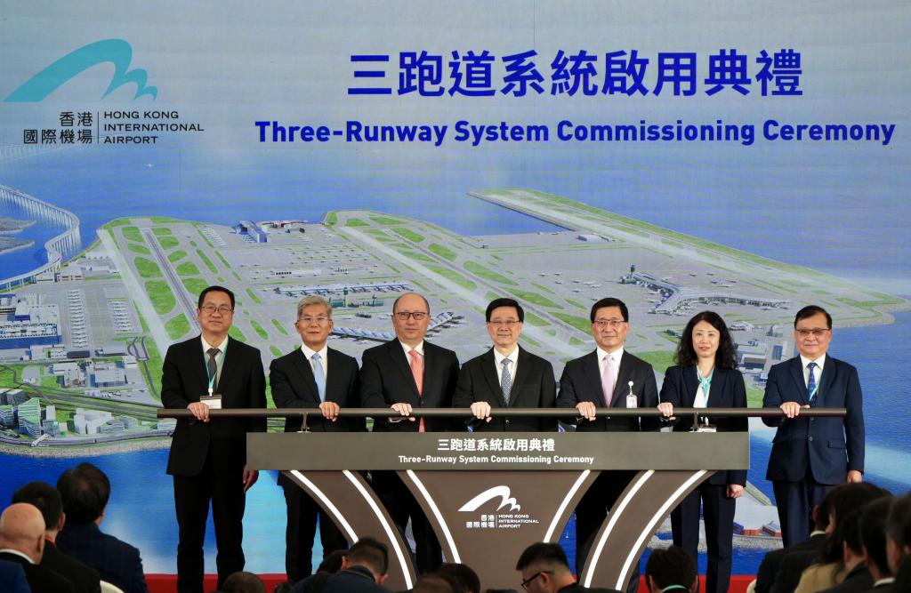 ▲香港國際機場三跑道系統去年11月底正式啟用,多名高官出席啟用典禮。
