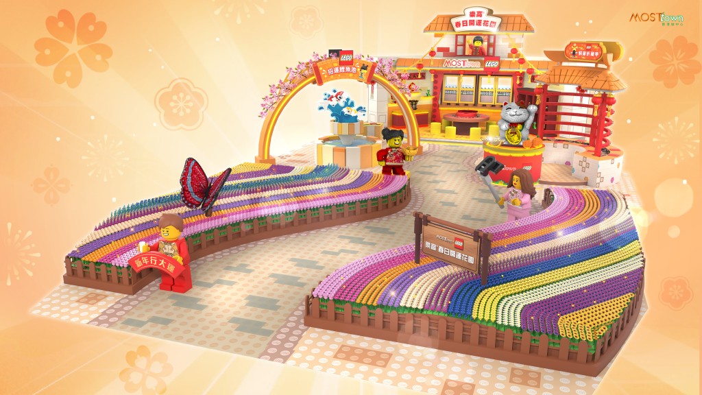 新港城中心與新都城中心于今個新春換上LEGO?的裝飾,帶來“LEGO?春日開運花園”,更邀請到LEGO?專業認證大師洪子健為花園設計新春裝置,用上超過68萬粒LEGO?積木砌出共6,888支LEGO? Botanical系列花朵,創造出全港最大的LEGO?花海。