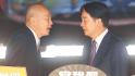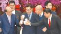 ▲柯建銘(中右)揚言雙罷在野黨,但民調顯示“立法院長”韓國瑜(左)的支持度穩如泰山。