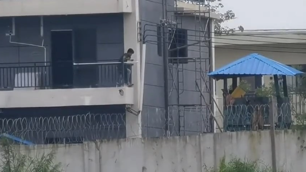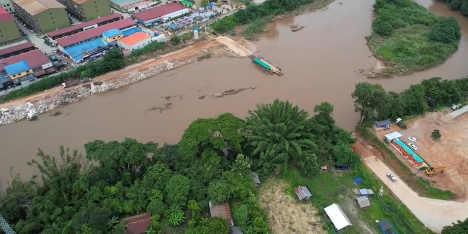微博流傳一段利用航拍拍攝KK園區的情況,見其與泰國只是一河之隔,園區規模龐大、更被有高墻和鐵絲網包圍。園區內有多個疑似哨站的高亭,不時有農夫車出入,而且更有一個移動浮橋,方便園區的人渡河。旁述更指,拍攝期間,見多人在建筑物外圍跑步,懷疑是被人罰的人。