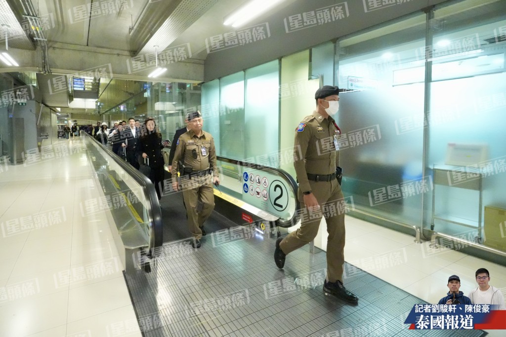 卓孝業小隊抵達曼谷機場,并由官方人員陪同離開