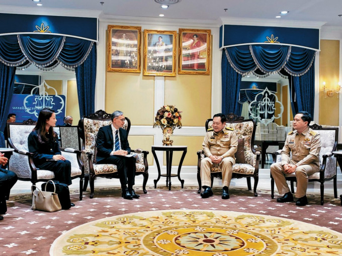 一行人下午拜會中國駐泰王國大使館公使吳志武,雙方就領事保護、受困港人情況等交換意見,卓孝業感謝公使和大使館人員高度關注有關個案,持續跟進及提供適切和可行協助。
