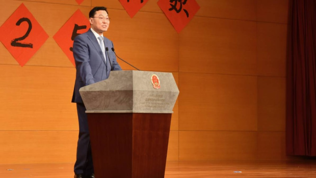 ▲中國駐美國大使謝鋒于2025年中美青年新春聯歡活動上致辭。中新社