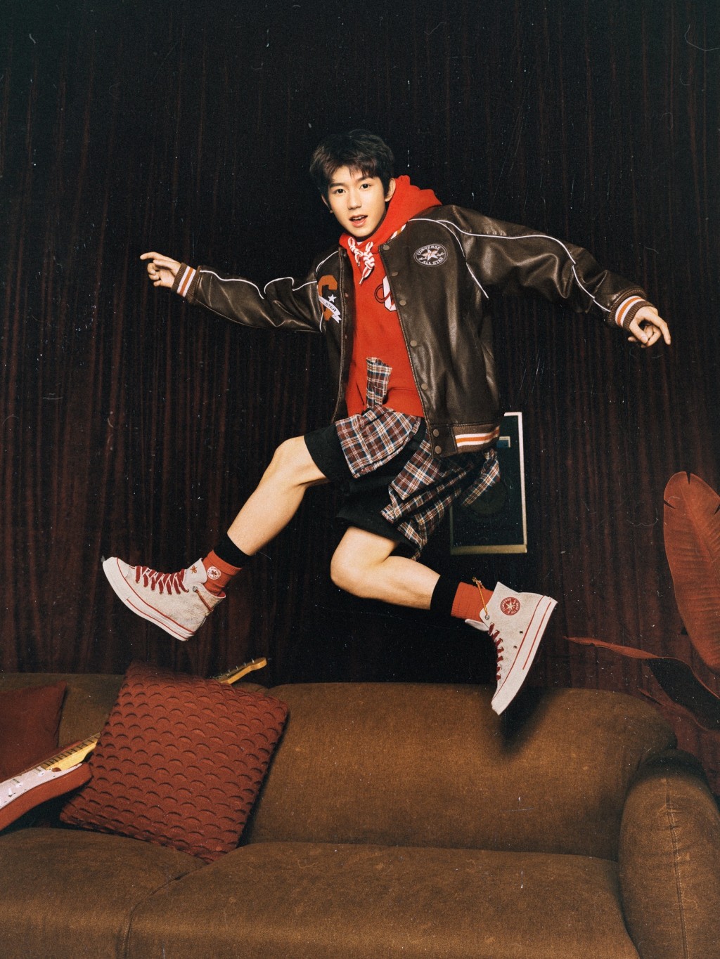 ▲Converse Chuck 70高筒帆布鞋 $749,質感霧光緹花鞋面結合仿蛇紋皮革,并飾以紅拼金色幸運繩細節。