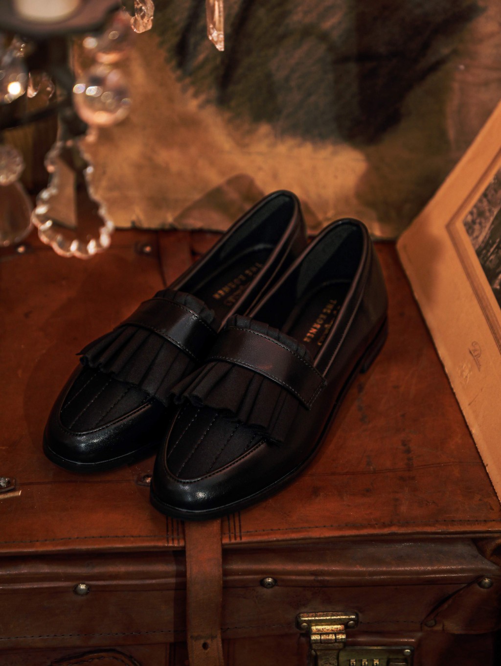 ▲The Korner伙拍由香港女歌手謝安琪(Kay)主理品牌Kaytiquette,合推“Kaytiquette跟我走”聯乘系列黑色Mariah Loafers $690,飾以絨面風琴荷葉邊細節。