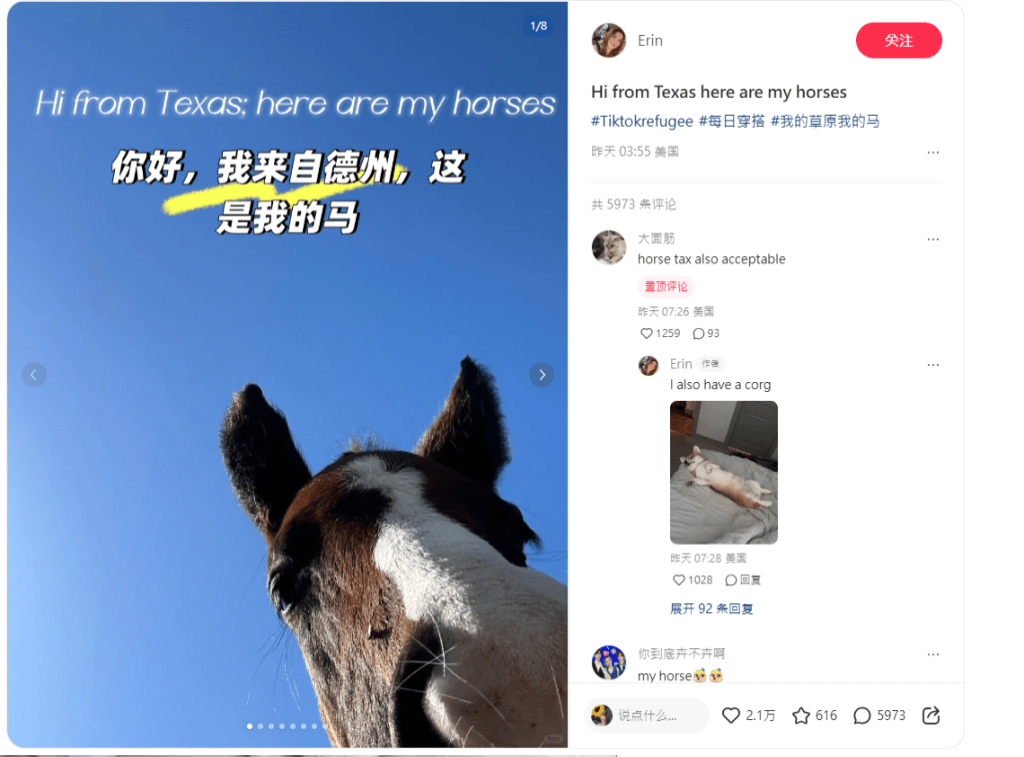 目前在小紅書上關于Cattax的話題有超過1,015.3萬的瀏覽量,討論量亦超過29.4萬;有關Tiktok refugee話題的瀏覽量已有3.5億,討論量更達到761.7萬。除了分享貓咪,更有兩地網民分享可愛的小馬、小羊或者小倉鼠等等。