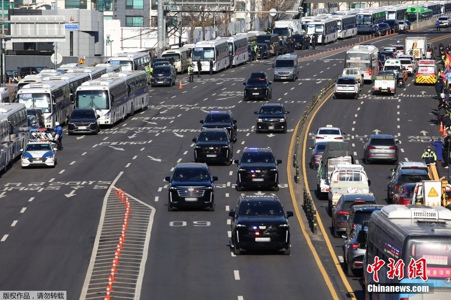 ▲當地時間1月15日,據韓國媒體報道,載有韓國總統尹錫悅的車隊離開總統官邸。
