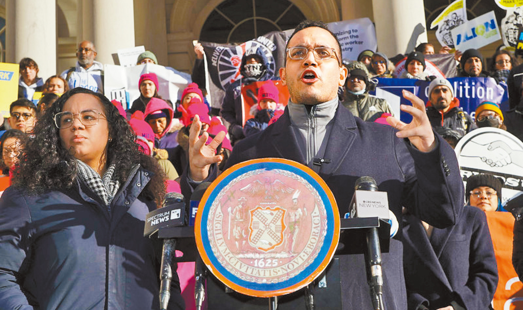 特朗普上任期臨近,而市長亞當斯最近與“邊境沙皇霍曼”(Tom Homan)進行了一個小時的會晤,事后并表示在遣返有罪移民方面達成了共識,引起移民社區普遍擔憂。市議會移民委員會主席阿維萊斯(Alexa Aviles)、市主計長蘭德等民選官員以及紐約移民聯盟、民權中心、亞美聯盟等權益機構的代表在公聽會前舉行的集會上稱,市長亞當斯在庇護城市問題上似有動搖之意,令移民社區更加心驚膽戰。他們說移民是紐約的中流砥柱,市府必須立即采取措施保護面臨特朗普遣返的移民。