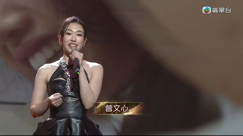 21:35 頒發最佳電視歌曲,由姚焯菲憑《愛·回家》主題曲奪得。
