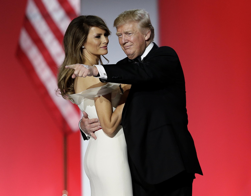 特朗普20日就職典禮因天候改為室內舉行,觀禮人數大幅縮水,不過韓媒稱,比起現場觀禮,能否取得后續就職舞會門票更重要。圖為2017年1月20日,特朗普于第一任期就職舞會上與梅拉尼婭共舞。美聯社