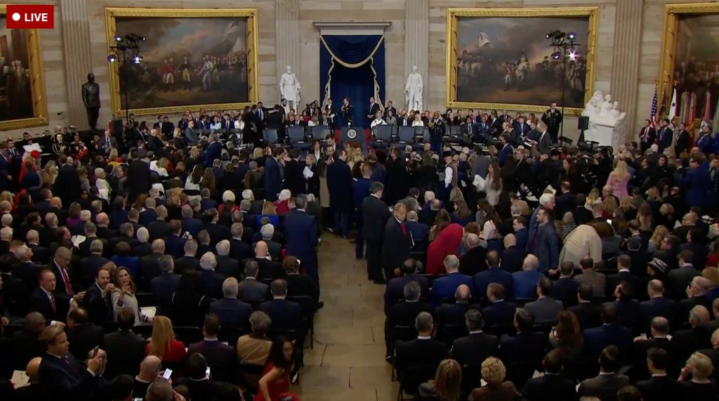 特朗普就職典禮快將開始,特朗普已抵達國會山莊,獲邀出席嘉賓開始就座,現場所見,副總統萬斯和前總統奧巴馬等已到場及入座。