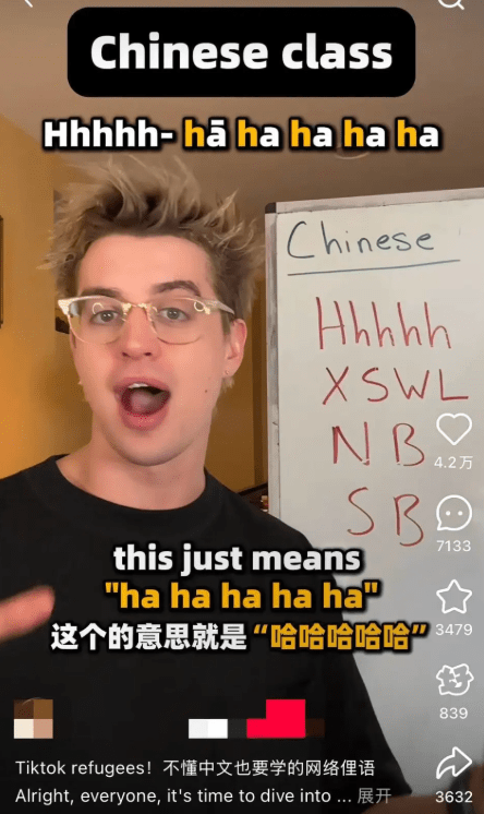 “洋抖難民”的涌入引發學習中文熱情,小紅書中鋪天蓋地都是“學中文”、“起中文名”的內容,甚至有網民直接開直播為外國人起名。許多外國網民在小紅書上發文稱“我愿意每小時支付30美元作為學習中文的報酬”;一些語言類博主亦捉緊流量風口,開始直播教學,除教正常漢語外,還開始介紹一些“XSWL”、“NB”等網絡俚語。