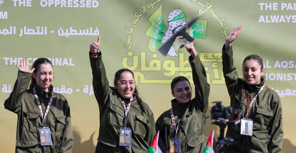 ▲四名女兵被哈馬斯移交給國際紅十字會人員。 路透社