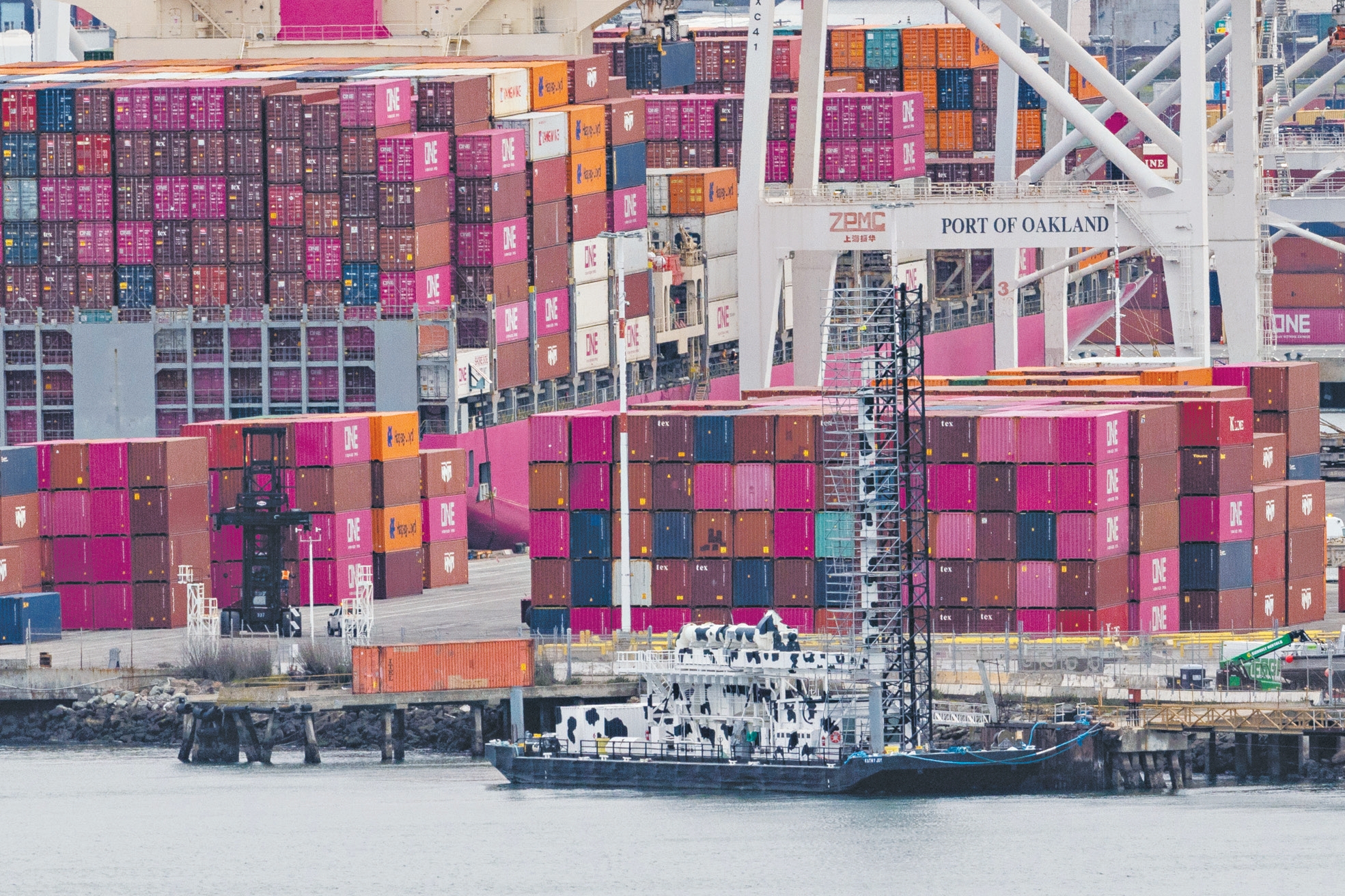 ▲中美互相加征關稅,貿易緊張局勢升級。圖為一艘滿載貨柜的貨船停泊在加州奧克蘭港。 路透社