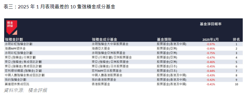 ▲2025年1月表現最差10只強積金成分基金