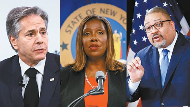 ▲特朗普再次頒令撤銷多名民主黨籍官員的安全許可,最新受影響的包括布林肯、詹姆斯和布拉格(由左至右)。 紐約郵報合并圖片