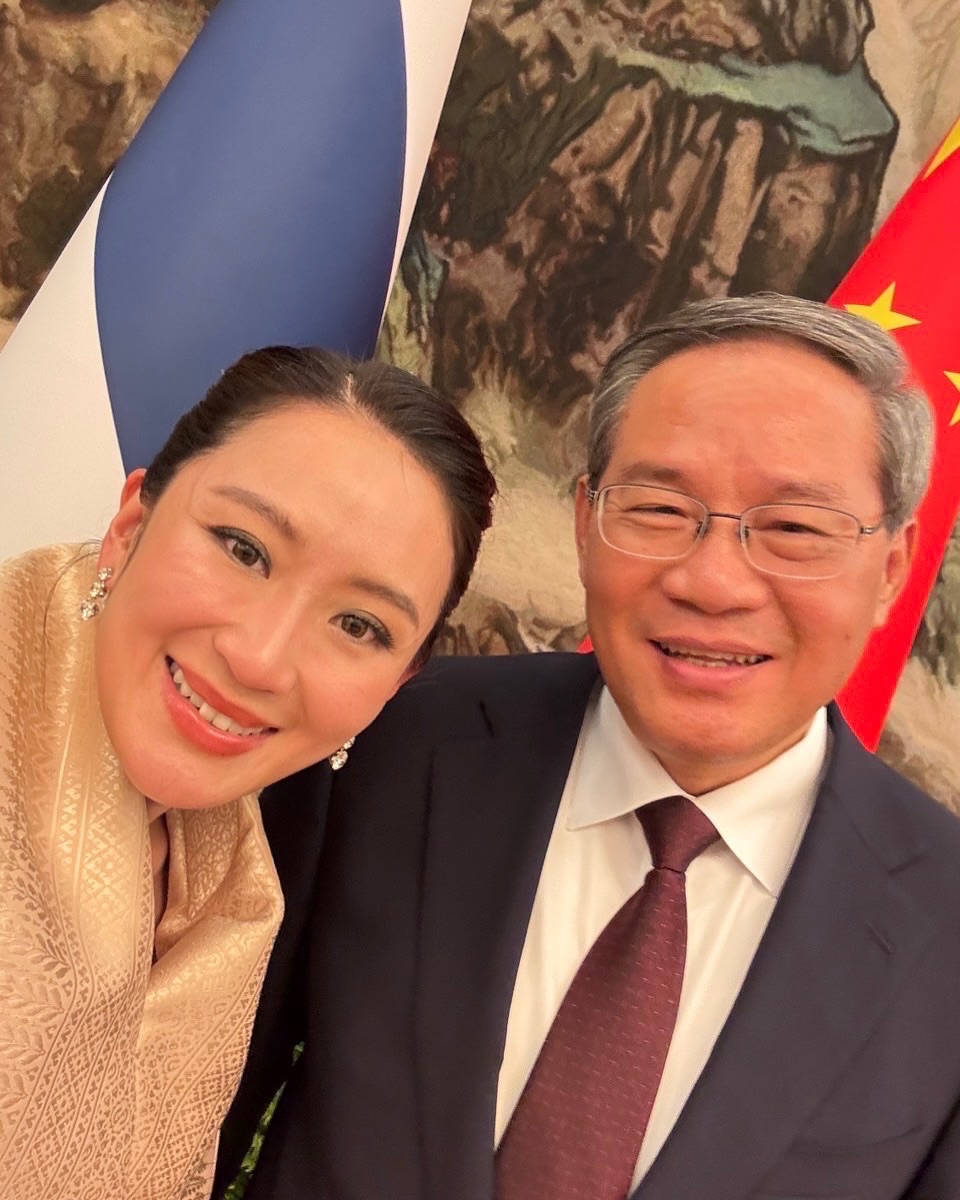 佩通坦在社交媒體上發文:“正式訪華,發布一組非正式圖片,天氣很冷但我感到很溫暖,感謝中國政府的熱情款待,所有照片都是我拍的?!彼l布的首張照片便是與李強的合影。