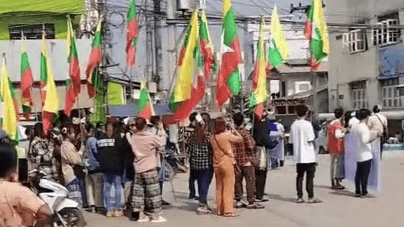 ▲緬甸民眾聚集抗議,揚言將抵制泰國產品。(網絡圖片)