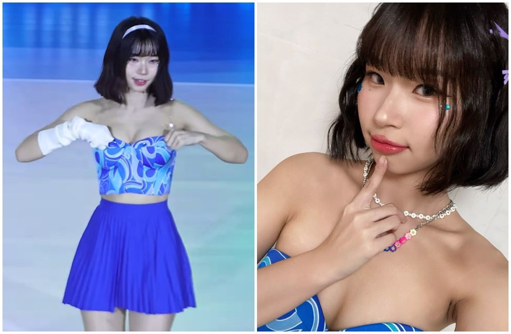 Ruka日前在instagram公開“皮蛋SOLO”在中場時帶來的演出,她留著一頭俏麗短發,身穿藍色馬甲套裝登場,只見傲人上圍根本藏不住,不僅露出大半截,還擠出一條深邃事業線,火辣身材讓人舍不得將視線移開,沒想到過程中疑似舞蹈動作過大,導致上半身衣服開始下滑,不過好在Ruka臨場反應快,拉著衣服后又繼續表演,直到轉過身后,才盡快把衣服喬好,免于在眾人面前露點走光。