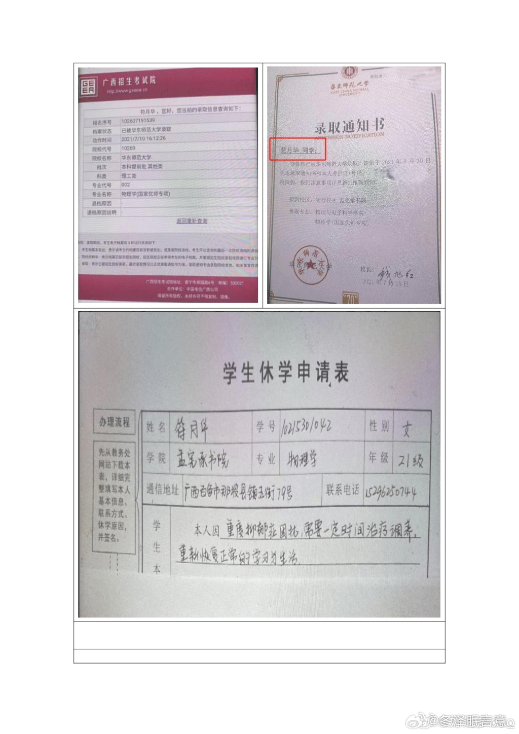 2021年,在老家縣城復讀一年后,她再次以全縣第一名的成績考入華東師范大學。遺憾的是,因為抑郁癥反復發作,在大學入學后半年,小華無奈提出休學申請。