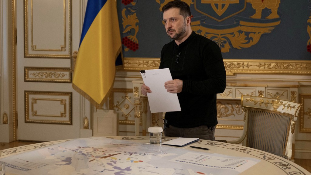 ▲澤連斯基在總統辦公室受訪,公開烏克蘭的稀土礦藏地圖。 路透社