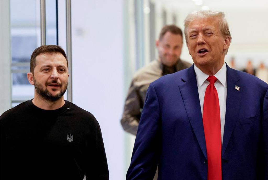 烏克蘭總統澤連斯基(左)與美國總統特朗普之前在美國會面。 路透社