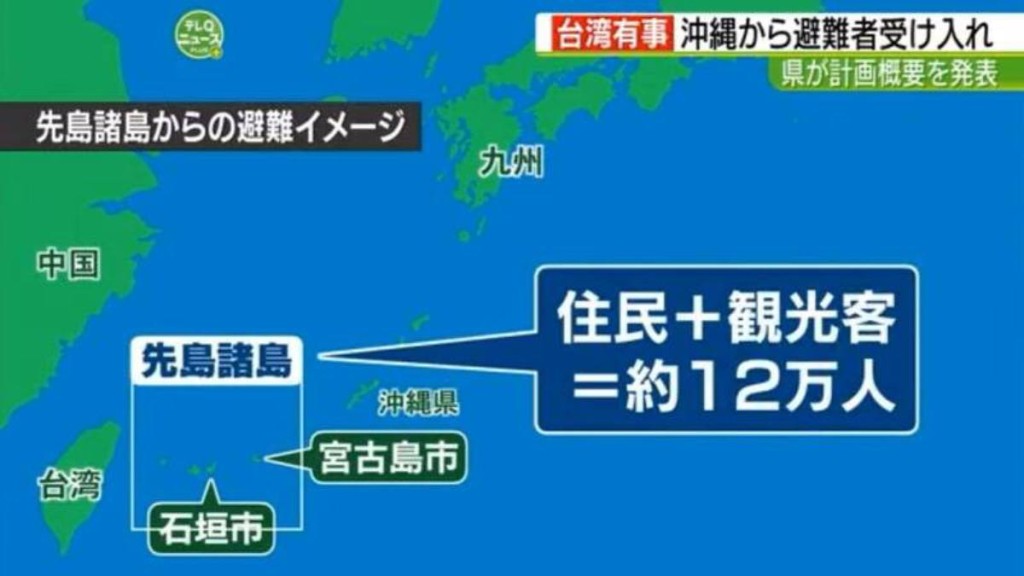 日本為預防“臺灣有事”,福岡縣政府近日發表一份撤離計劃,若臺灣出現緊急狀況,預計讓12萬名隸屬沖繩縣的各離島居民、各國觀光客,遷移到福岡各地避難。