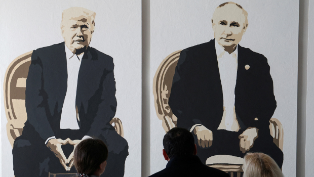 ▲克里米亞雅爾達一家藝廊本月8日舉行的“雅爾達2.0”藝展會場陳列美國總統特朗普、俄羅斯總統普京畫像。展覽主旨與1945年雅爾達會議有關。(路透)