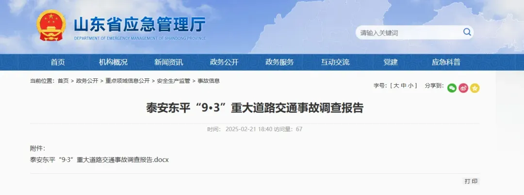 近日,山東省人民政府發布關于泰安東平“9·3”重大道路交通事故調查報告的批復,詳情如下:
