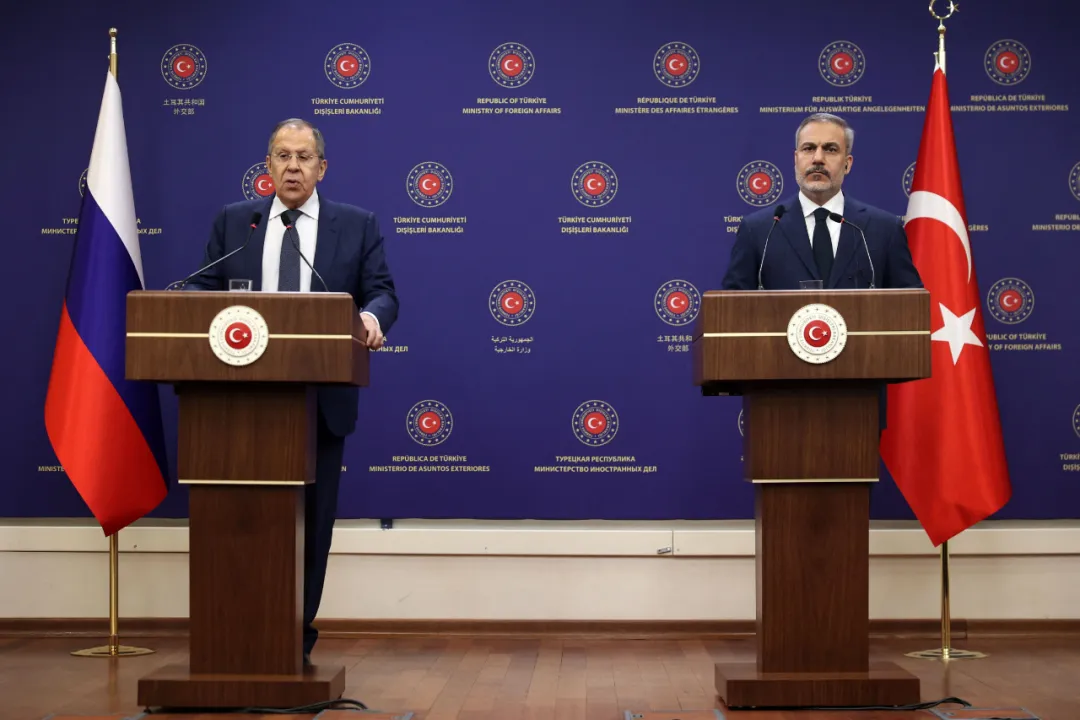 ▲2月24日,俄羅斯外長拉夫羅夫(左)和土耳其外長費丹在安卡拉出席記者會。法新社