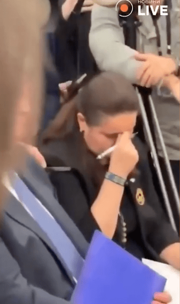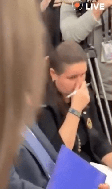 而此時,在場的烏克蘭大使瑪卡羅娃(Oksana Markarova)頓時皺眉搖頭,雙手遮臉,從她的表情,足以反映情況有多糟糕。而她的無奈表情,亦被媒體捕捉到及報道了出來,引起熱議。