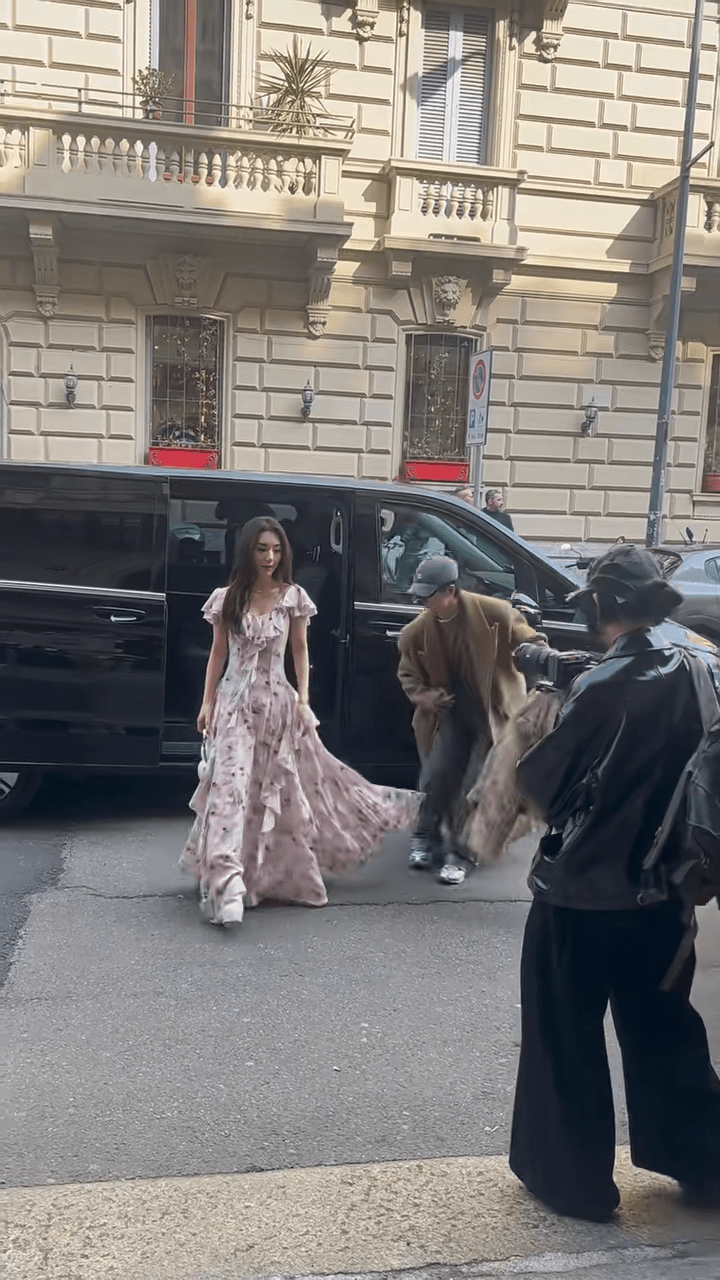 方媛近日現身米蘭時裝周。