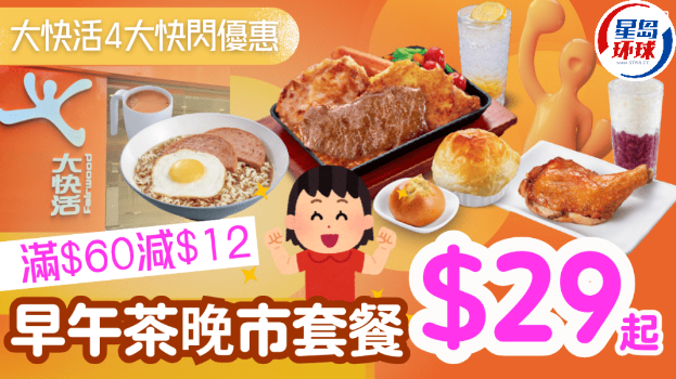 • 大快活4大快閃優惠!早午茶晚市套餐$29起,多個套餐滿$60減$12