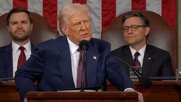 ▲當地時間4日,特朗普(中)在國會聯席會議上發表講話。圖源:美媒