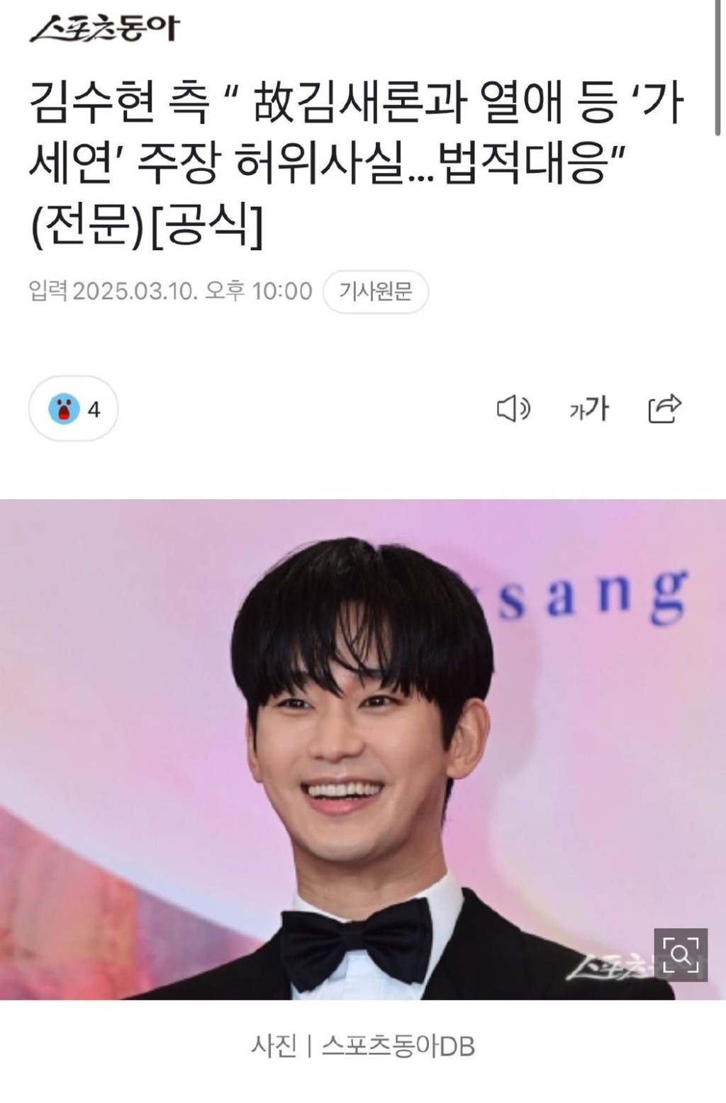 不過,其后金秀賢所屬公司就發出聲明澄清:“對于有消息稱本公司和演員金秀賢與 YouTuber李鎮浩勾結,折磨了已故演員金賽綸、聲稱已故的金賽綸演員從15歲起就與演員金秀賢戀愛、聲稱已故演員金賽綸在酒后駕車事故后經紀公司處理不正當,本公司所屬經紀人與 YouTuber李鎮浩有關係等,對本公司和演員金秀賢提出了眾多的惡意主張,但這些都是無法默許的虛假事實,本公司將審查虛假散布事實可以採取的最強有力的法律對策?!贝送?,金賽綸的家人近日發聲指金秀賢曾為金賽綸墊付約350萬港元債務,但后續追討還款的行為卻成為壓垮金賽綸心理防線的關鍵因素,故現已向首爾警方提交訴狀,要求對李鎮浩、金秀賢及冬至美電影導演等人追究法律責任。