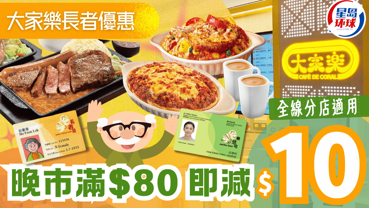 踏入3月,連鎖快餐店大家樂推出全新一輪長者晚市優惠,由即日起至3月31日,長者成為會員后,于晚市時惠顧滿$80,憑“$10電子優惠券”即可減$10。 即日起每周取一張,最多減$30! 每星期都可享豐盛晚餐,即睇大家樂最新長者優惠!
