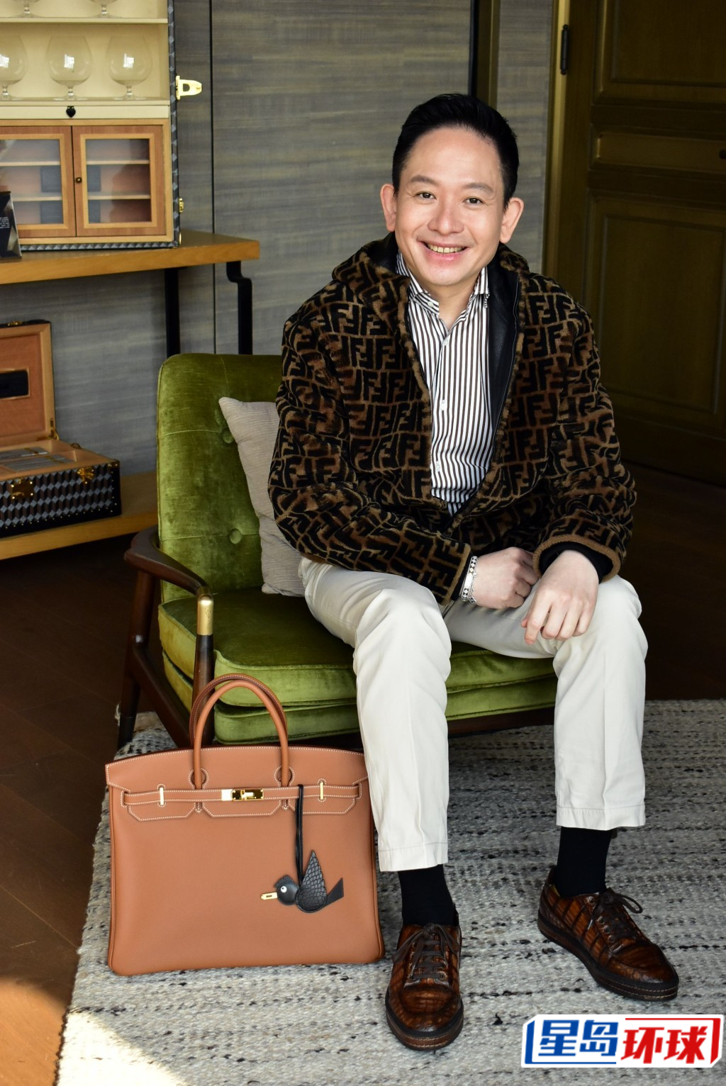 ▲向展鵬腳踏10萬鱷魚皮鞋,Fendi外套8萬多,Birkin40手袋加掛飾總值13萬接受訪問。