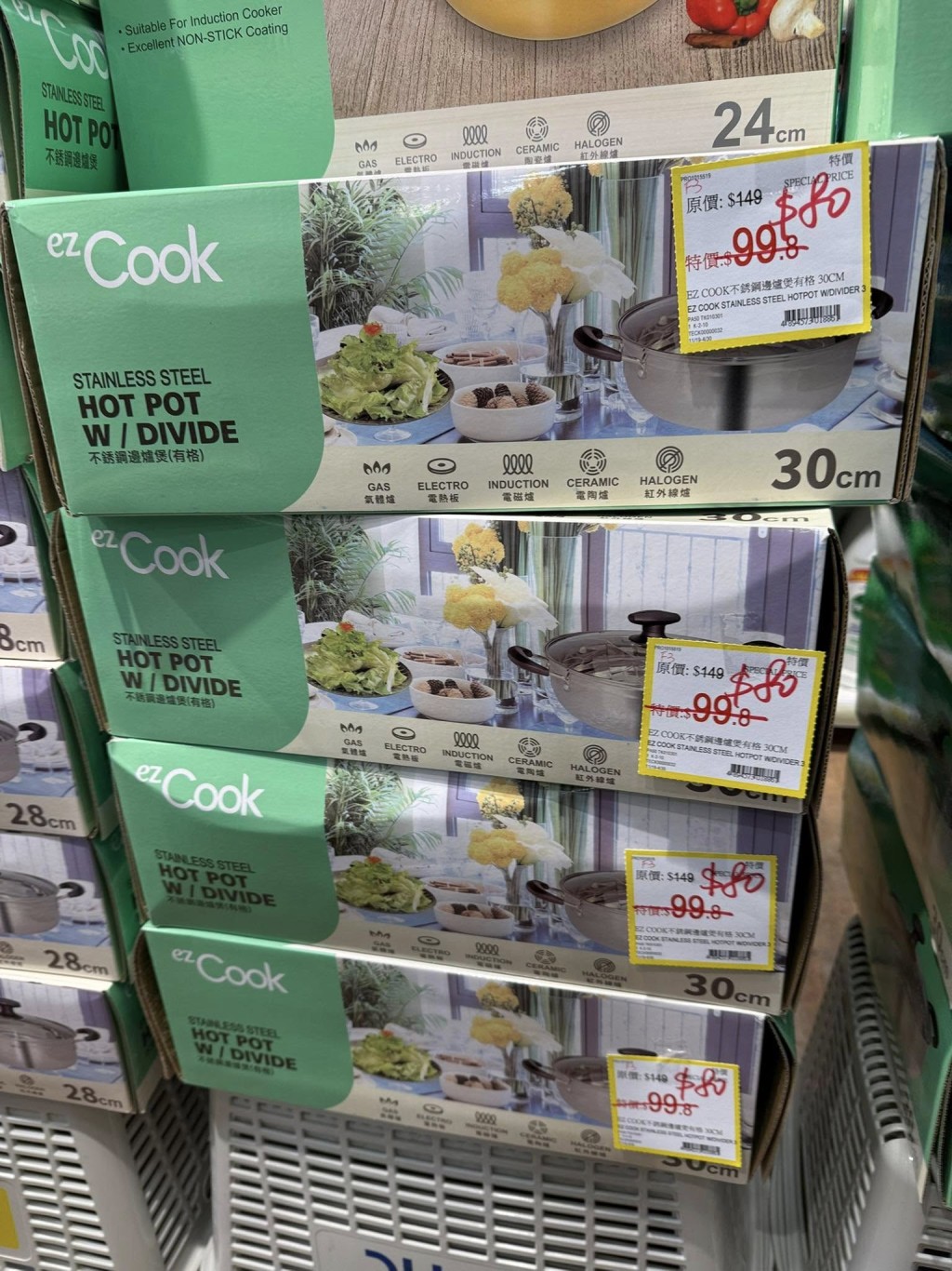 結業清貨優惠涵蓋多類貨品,均以低至$4的折實價發售,包括各類家品、廚具用品、食品及清潔用品等,其中24cm砂鍋僅售$35、28cm不銹鋼邊爐煲$80、威猛先廚房通渠啫喱$30、多功能刨絲器$25、海底撈蕃茄火鍋底料$10,為家庭日常開支節省不少!