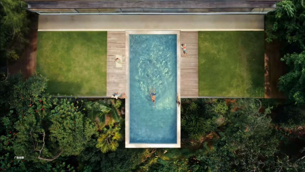 ▲宣傳片中最初出現的泳池是長方形,比例跟現時的20:9直身款機相近。