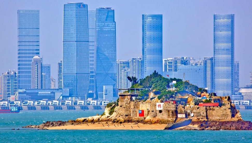 從臺灣金門的小島眺望廈門的高樓