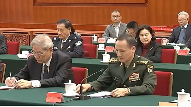 東部戰區司令員林向陽(右一)參加《反分裂國家法》實施20周年座談會。 央視