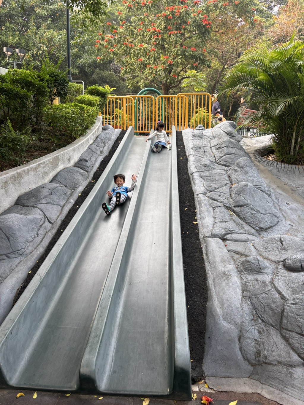 香港游樂場的滑梯多以塑膠制作,磚石質感的相當少見。(圖片來源:《親子王》)