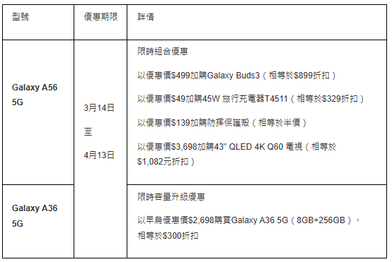 Galaxy A56 5G、A36 5G早鳥優惠禮遇