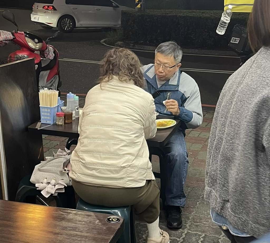 ▲有網友在臉書社團PO出2張在用餐時,目擊1名長相酷似柯文哲的男子的照片。(圖 / 取自臉書社團《爆廢公社》)